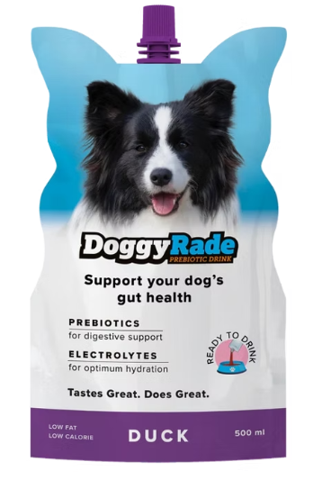 DoggyRade is a functional health drink for dogs containing prebiotics, electrolytes and beneficial amino acids.